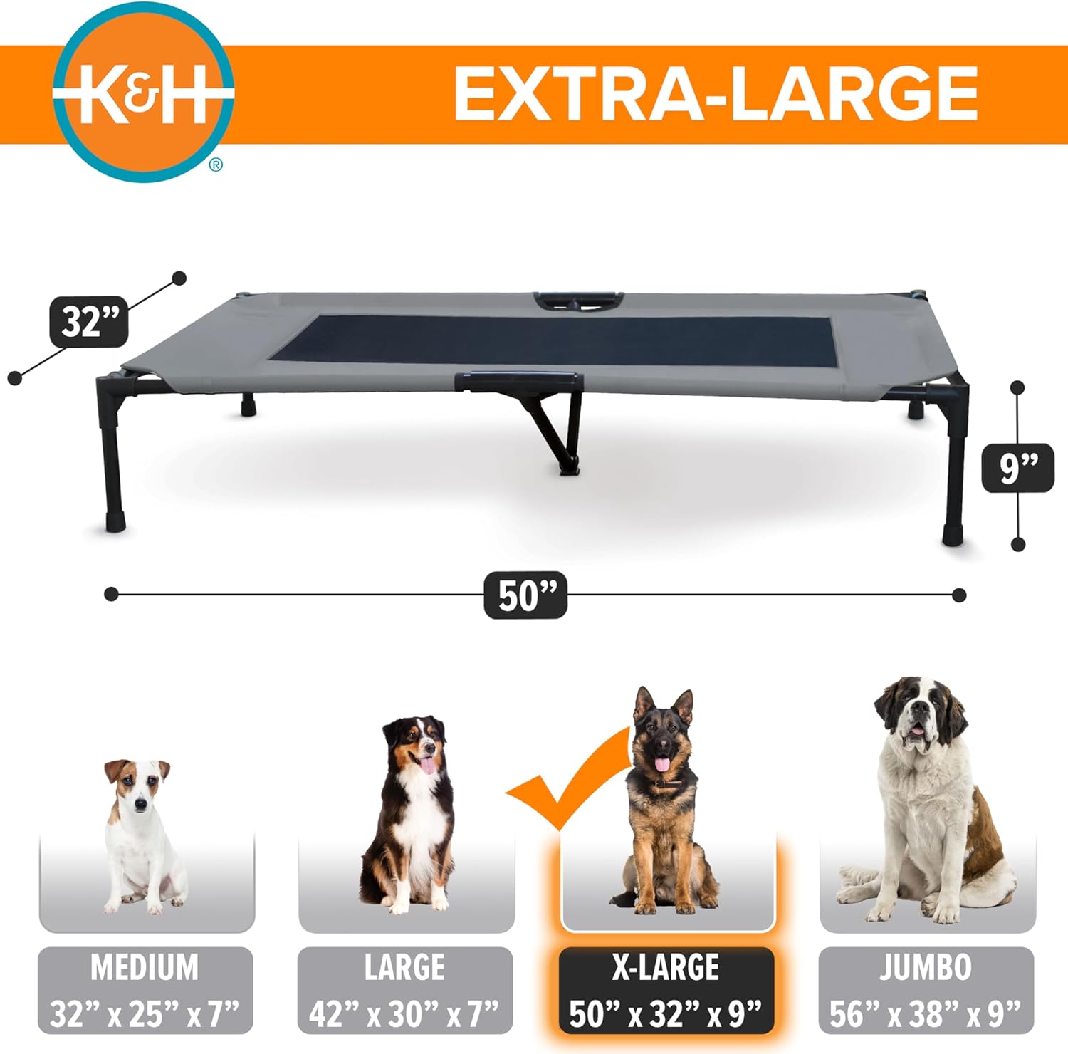 K&H Pet Products Original Pet Cot, Gray/Mesh, Large/30" x 42" x 7"