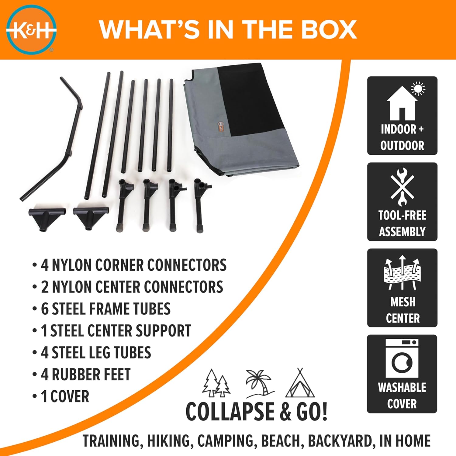 - EASY TOOL-FREE ASSEMBLY: Collapsible outdoor dog cot is easy to assemble and disassemble, no tools necessary making this portable bed great for use at home or during travel, camping, picnicking, place cot for dog training and more