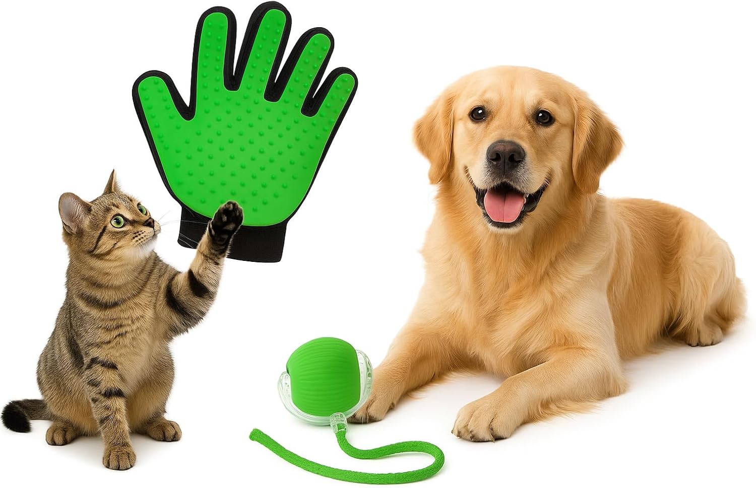 Pet Grooming & Play Set for Cats & Dogs | Smart Ball Toy & Deshedding Glove | Keeps Pets Active & Reduces Shedding